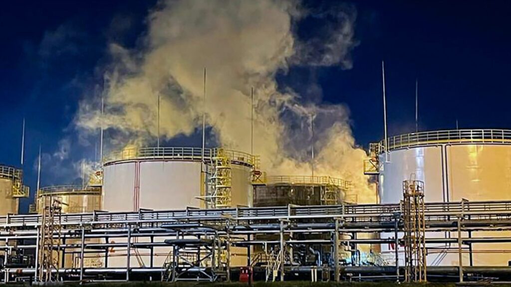 რუსეთთან ომში მყოფ ს რუსეთის ტერიტორიაზე და ანექსირებულ ყირიმში კანონიერ სამიზნედ აქვს გამოცხადებული სამხედრო ობიექტები და საწარმოები, რომლებიც რუსული არმიის მომარაგებაზე მუშაობენ, მათ შორის ნავთობგადამამუშავებელი ქარხნები და ნავთობის საცავები.
