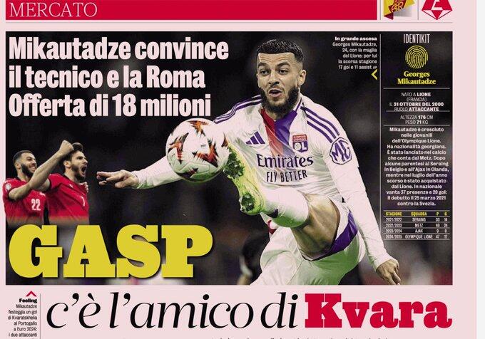 „რომამ“ „ლიონს“ გიორგი მიქაუტაძის სანაცვლოდ 18 მილიონი ევრო შესთავაზა, – იტყობინება „გაძეტა დელო სპორტი“.