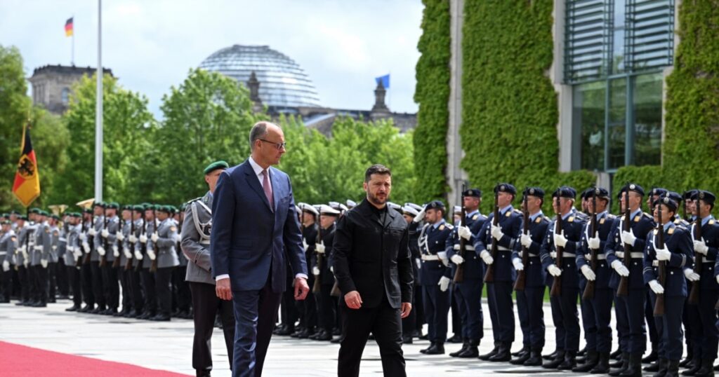 უკრაინის პრეზიდენტი ვოლოდიმირ ზელენსკი სამთავრობო დელეგაციასთან ერთად ბერლინში 28 მაისს ჩავიდა და გერმანიის ფედერალურ კანცლერ ფრიდრიხ მერცს და პრეზიდენტ ფრანკ-ვალტერ შტაინმაიერს შეხვდა.