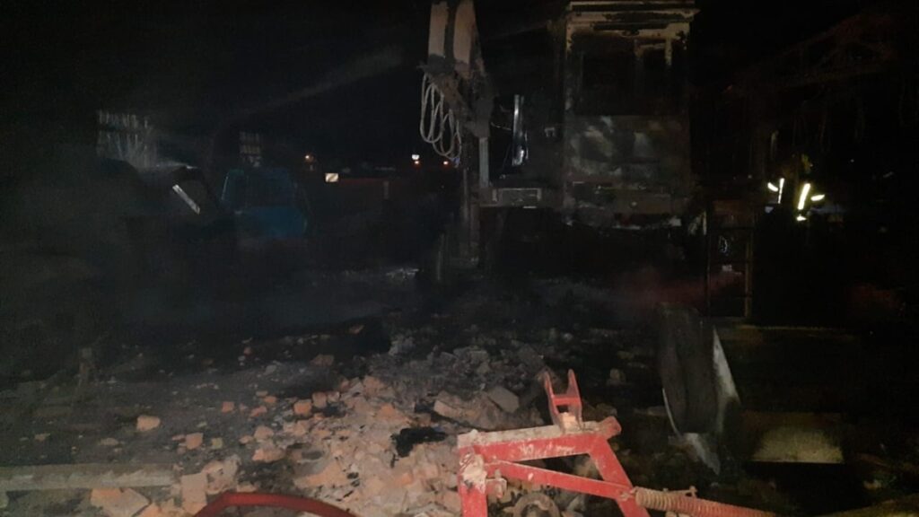 ხარკოვის საოლქო-სამხედრო ადმინისტრაციის ცნობით, უპილოტო საფრენი აპარატებით მასირებულმა შეტევამ ქალაქ იზიუმში, სამოქალაქო საწარმოს ტერიტორიაზე გამოიწვია შენობების ნგრევა და მასშტაბური ხანძარი.