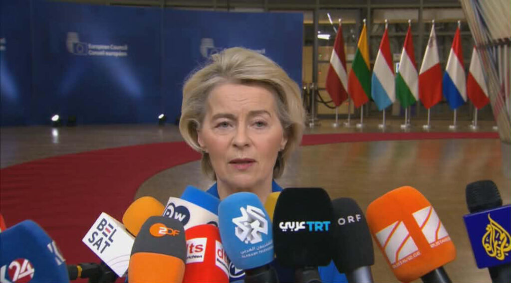 „დღეს ევროპული საბჭოს შეხვედრა მნიშვნელოვან მომენტში იმართება. დღეს ჩვენი საბოლოო მიზანი უკრაინაში მშვიდობაა. ამისთვის კი უკრაინას მომდევნო ორი წლის განმავლობაში დაფინანსება სჭირდება. საუბარია 137 მილიარდ ევროზე. ჩვენ ვალდებულება ავიღეთ, რომ დაახლოებით 90 მილიარდს დავფარავთ. მე ორი წინადადება წამოვაყენე: პირველი ევროკავშირის ბიუჯეტზე სესხის აღებაა, ხოლო მეორე რეპარაციული სესხია. ამიტომ, დღეს განვიხილავთ, თუ რომელს ავირჩევთ“, – განაცხადა ურსულა ფონ დერ ლაიენმა.