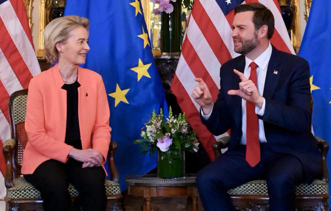 ევროკომისიის პრეზიდენტი, ურსულა ფონ დერ ლაიენი აშშ-ის ვიცე-პრეზიდენტს, ჯეი დი ვენსს შეხვდა. ამის შესახებ ფონ დერ ლაიენი X-ის საკუთარ გვერდზე წერს.