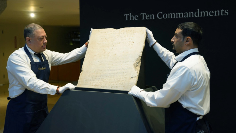 უძველესი ქვის ფილა ათი მცნებით, ნიუ-იორკში, სოტბის აუქციონზე ამ თვის ბოლოს გაიყიდება.