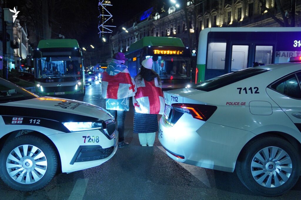 უწყვეტი საპროტესტო აქციის 91-ე დღე თბილისში, რუსთაველის გამზირზე, რომელიც დემონსტრანტებმა კვლავ გადაკეტეს