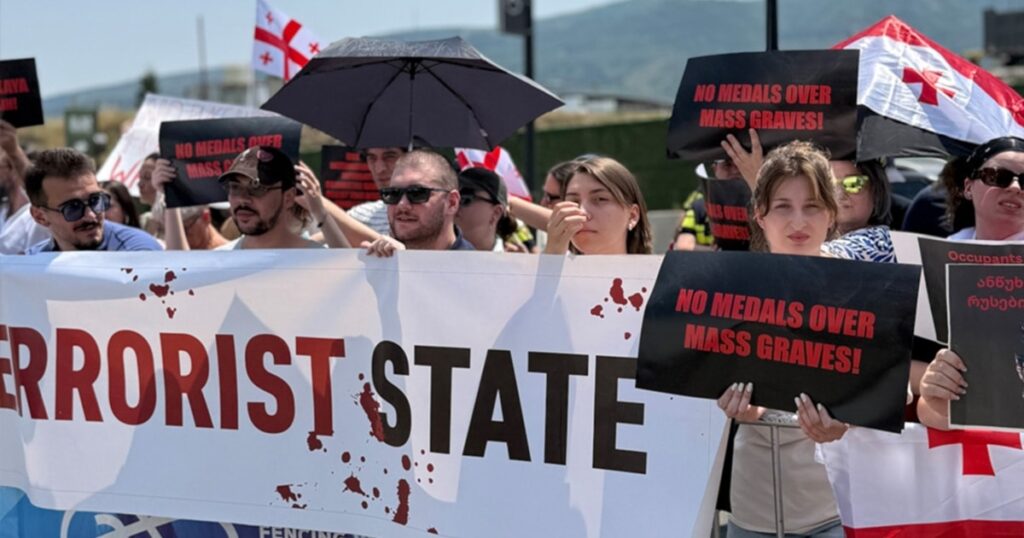 · რუსეთის დელეგაციაში 24 სპორტსმენია, ნაწილი – სამხედრო ჩინით. დემონსტრანტების ინფორმაციით, მათგან 17 არის სამხედრო მოსამსახურე.