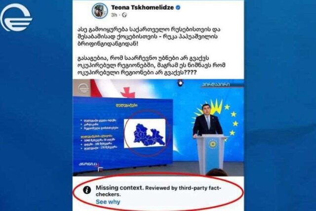 ფაქტების შემმოწმებლების შეტყობინების საფუძველზე, Meta-მ ოპოზიცია მორიგ სიცრუეში ამხილა და მათ მიერ გავრცელებულ ინფორმაციას დეზინფორმაციის სტატუსი მიანიჭა.
