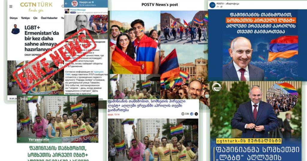 თავის მხრივ, ტელეკომპანიებმა „რუსთავი 2“-მა და „პოს ტვ“-მ ინფორმაციის წყაროდ მიუთითეს ვებსაიტი lgbtq-armenia.com. ერთგვერდიან ვებსაიტზე, სომხეთში თითქოს დადგეგმილი ლგბტქ+ მარშის ფოტოები და დეტალური აღწერაა მოცემული. ამასთან, გამოსახულება, რომლებზეც მსვლელობის მონაწილეები ლგბტქ+ და სომხეთის დროშებით, ასევე პრემიერ-მინისტრი ნიკოლ ფაშინიანია აღბეჭდილი, ხელოვნური ინტელექტის გამოყენებითაა გენერირებული.
