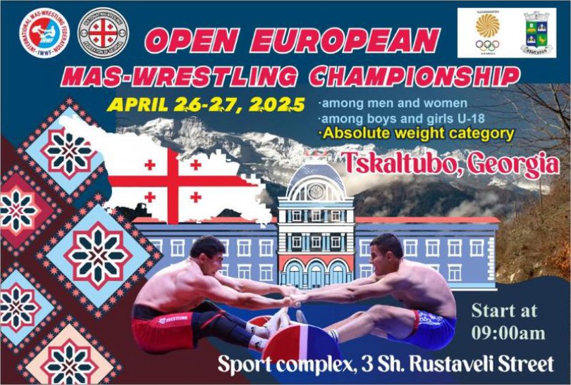 Mas-wrestling-ის ოფიციალურ საიტზე განთავსებული განთავსებული ინფორმაციით, “ევროპის ღია ჩემპიონატი” აპრილის თვის ბოლოს, წყალტუბოს სპორტკომპლექსში ჩატარდება.