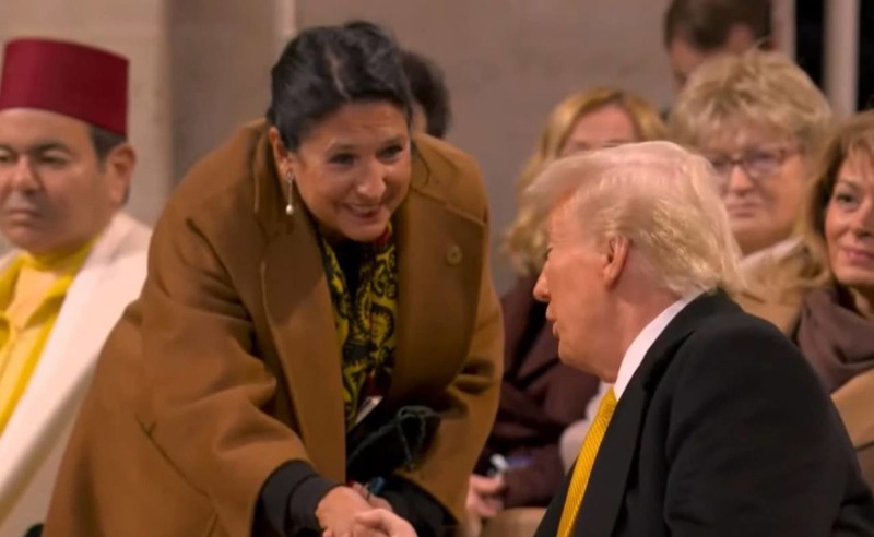 ვრცელდება ნოტრ-დამის გახსნის ცერემონიაზე გადაღებული ფოტო, რომელზეც ერთად ჩანან საქართველოს პრეზიდენტი სალომე ზურაბიშვილი და აშშ-ს არჩეული პრეზიდენტი დონალდ ტრამპი.
