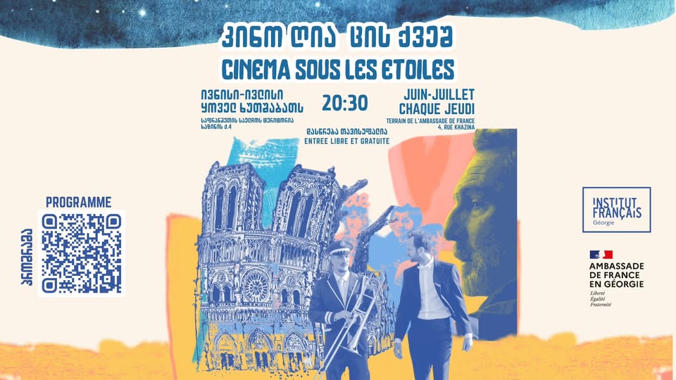 არ გამოტოვოთ. მთელი ივლისის განმავლობაში ჩვენებები ჩატარდება ყოველ ხუთშაბათს, საღამოს 20:30 სთ-ზე, საფრანგეთის საელჩოს ტერიტორიაზე, ხაზინის ქ. 4. ლოკაცია : https://shorturl.at/evgZk