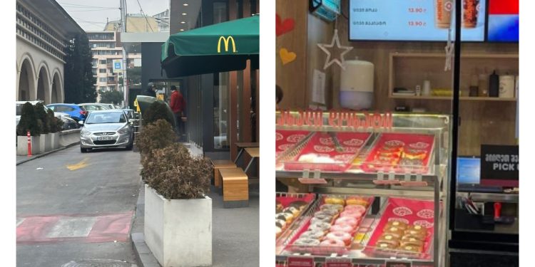 გაფიცვას არ შეუერთდა ჭყონიას მაკდონალდსი. როგორც ,,ალიას” მკითხველის მიერ მოწოდებული ფოტოებით (რომელიც გადაღებულია 16.38 წუთზე) გარკვევით ჩანს, იმ დროს, როდესაც დოლიძეზე ვენდი-დანკინი დაკეტილია, გზის მეორე მხარეს, სპორტის სასახლესთან ,,მაკდონალდსი” შეკვეთებს გასცემს.