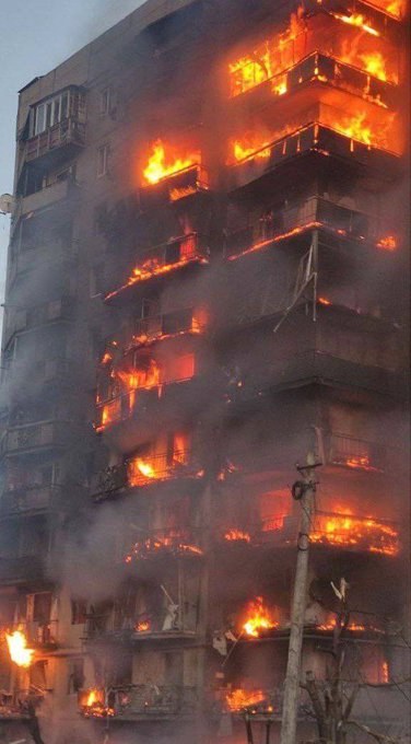 ქალაქ კოსტიანტინოვკაში რუსებმა საცხოვრებელ შენობას დაუშინეს – ცეცხლმა მთელი შენობა მოიცვა. შიგნით ადამიანები არიან ჩარჩენილები