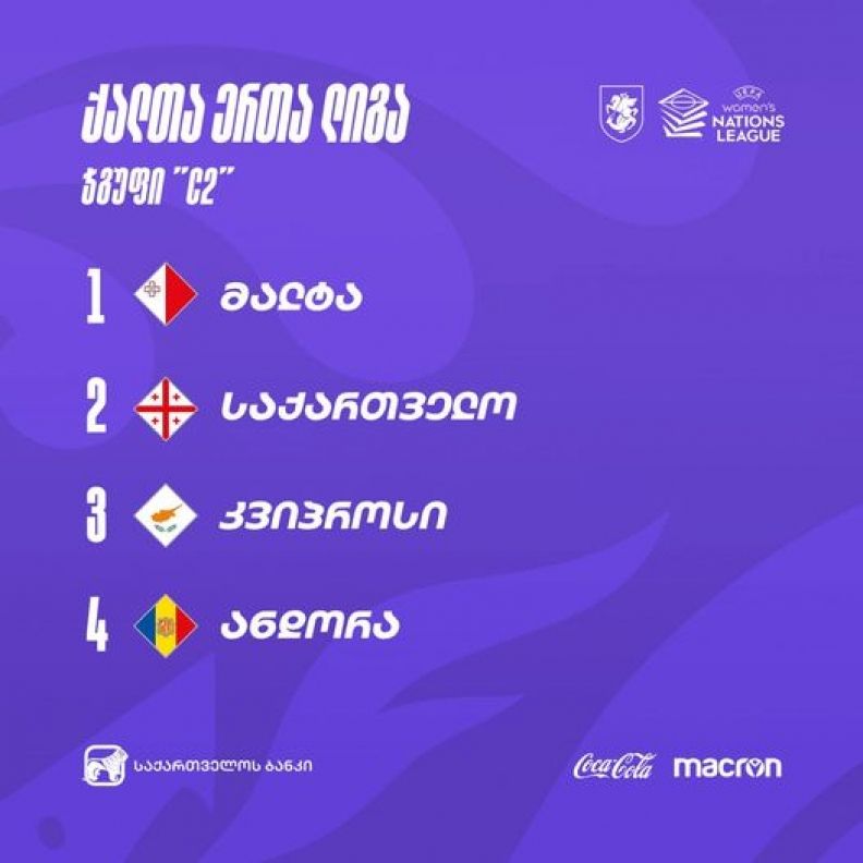 საქართველოს ნაკრები C ლიგის მეორე ჯგუფში მოხვდა, სადაც მალტის, კვიპროსის და ანდორის ნაკრებებთან ერთად ითამაშებს.