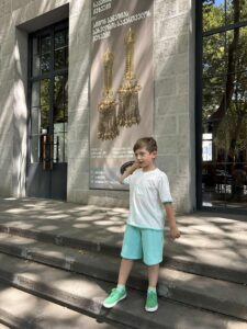 – კი, მე ძალიან მიყვარს მხატვრობა. ამერიკის ბევრი ქალაქის მუზეუმში ვარ ნამყოფი: ნუიორკში, ბოსტონში, ვაშინგტონსა და ფილადელფიაში. ნახატის ორიგინალში ნახვა შეუდარებელია. განსაკუთრებით იმპრესიონისტები მომწონს. ჩემი მამიკოც მაგ სტილში ხატავს, ჩვენ სახლში ბევრი ნახატი გვაქვს. ბათუმშიც წამიყვანა დედამ აჭარის მუზეუმში. როცა ბილეთებს ვყიდულობით, ერთი ქალი მოვიდა და დედას უთხრა – ბავშვმა ხელი არ უნდა დაადოს ნახატებს, და არ უნდა იხმაუროსო. მე ცოტა მეწყინა, ეტყობა ეგონა რომ პირველად ვიყავი მუზეუმში და არ ვიცოდი ქცევის წესები. მანამდე არ მქონდა ნანახი ქართველი მხატვრების ნახატები, ძალიან მომეწონა ახვლედიანის თოვლში გახვეული საქართველოს ქალაქები. ისეთი რეალურია თითქოს საგუნდაოდ გეძახიან ნახატები. ერთადერთი გული დამწყდა რომ კედელზე სურათზე მითითებულ შტრიხ კოდზე ინფორმაციას ტელეფონში ქართულად სწრაფად ვერ ვკითხულობდი, ამიტომ ინგლისური ავირჩიე. მომავალ წელს აუცილებლად ქართულად წავიკითხავ.