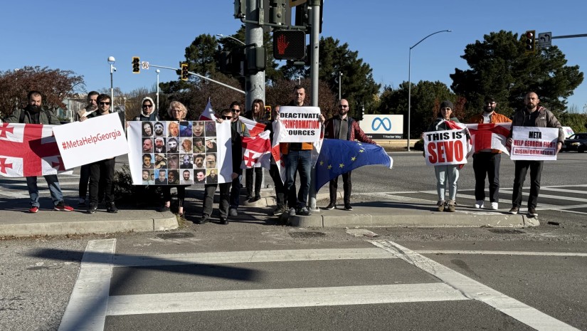 ქართველი ემიგრანტები კალიფორნიაში Meta-ს სათავო ოფისთან, მენლო პარკში, საქართველოში მიმდინარე მოვლენებისადმი მეტი ყურადღების მოთხოვნით შეიკრიბნენ.