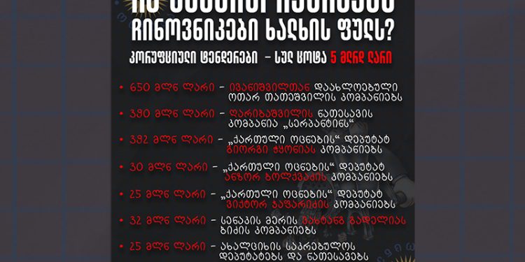 · 2013-2020 წლებში, სახელმწიფო ქონება 13 მილიონ ლარად გაიყიდა ისეთ პირებზე, რომლებმაც ქონების მიღებიდან მალევე მმართველ პარტიას 2 მილიონი ლარი დაუბრუნეს შემოწირულების სახით.