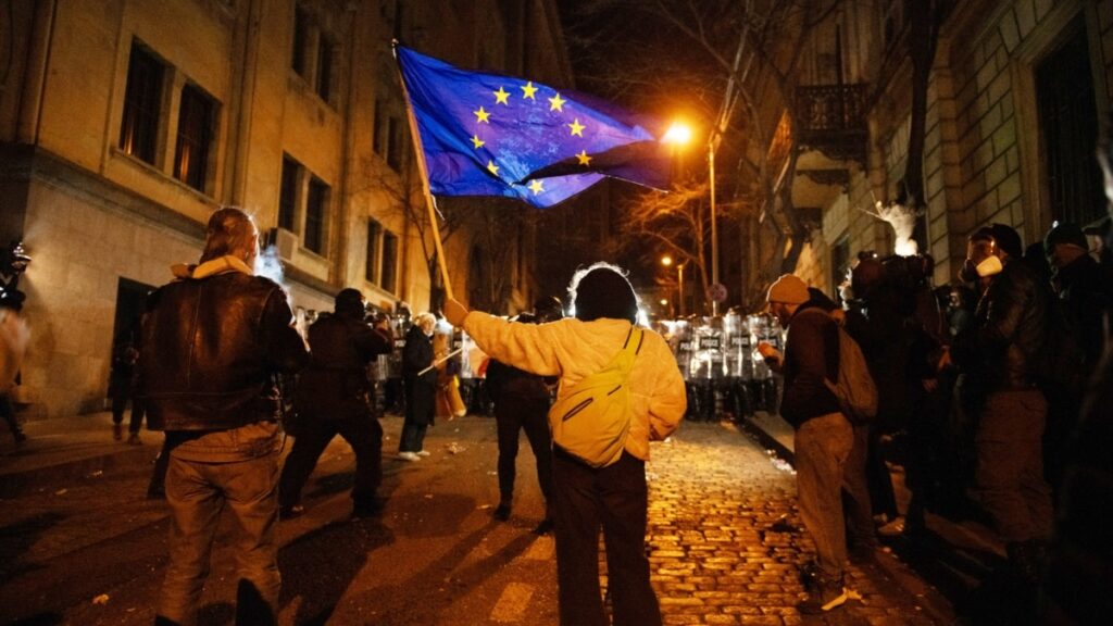 თბილისში და საქართველოს ქალაქებში საპროტესტო გამოსვლები 28 ნოემბრიდან დაიწყო, მას შემდეგ, რაც „ქართული ოცნების“ ხელისუფლებამ გადაწყვიტა, 2028 წლის ბოლომდე დღის წესრიგში არ დააყენოს ევროკავშირთან მის წევრობაზე მოლაპარაკების გახსნის საკითხი და 2028 წლის ბოლომდე უარი თქვას ევროკავშირის საბიუჯეტო გრანტებზე. ამასთან, „ქართული ოცნების“ მთავრობა ირწმუნება, რომ მიზნად რჩება 2030 წლისთვის ევროკავშირში საქართველოს შესვლა.