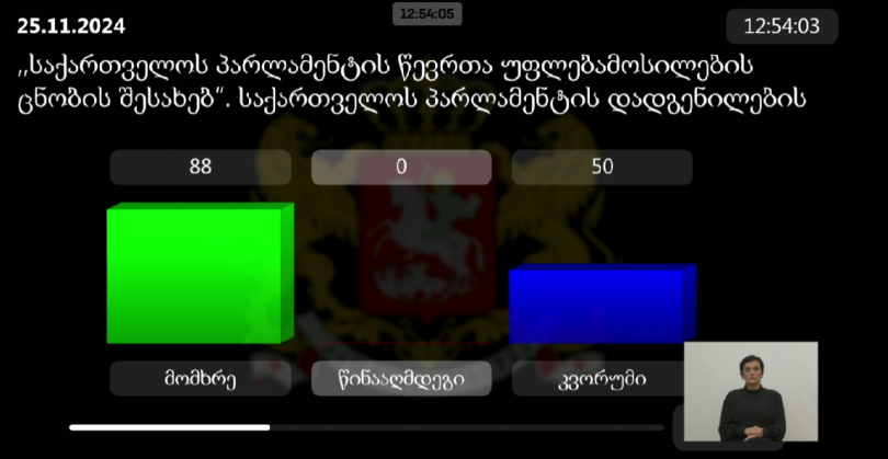ქართულმა ოცნებამ პარლამენტში თავისი უფლებამოსილება ცნო. კენჭისყრაში მონაწილეობა ოცნების 88 წევრმა მიიღო და მხარი ყველამ დაუჭირა.