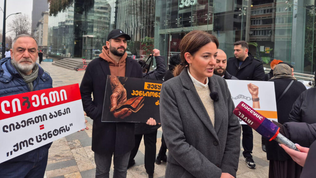 „ძლიერი საქართველოს“ ერთ-ერთმა ლიდერმა ქეთევან თურაზაშვილმა თბილისში, „ლიბერთი ბანკის“ სათავო ოფისთან, საპენსიო სესხებით დაზარებულ ადამიანებთან ერთად აქცია გამართა.