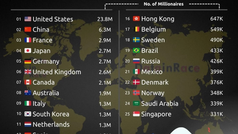 ტოპ-25 ქვეყანა მილიონერების რაოდენობის მიხედვით: