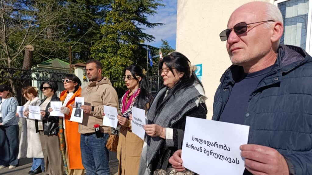 ქუთაისში, იმერეთის სამხარეო პოლიციასთან აქცია გამართეს ჟურნალისტ მირიან ბერულავას მხარდასაჭერად მისმა კოლეგებმა. ჟურნალისტების თქმით, ფეისბუკ პოსტისთვის ადამიანის დაკავება მათთვის მიუღებელია – მირიან ბერულავა 1 თებერვალს დააკავეს და მას ადმინისტრაციულ სამართალდარღვევას, პოლიციელისადმი დაუმორჩილებლობას ედავებიან. ის სამტრედიის წინასწარი დაკავების იზოლატორშია გადაყვანილი.
