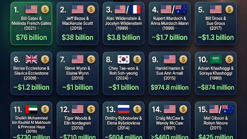 ისტორიაში ყველაზე ძვირი განქორწინებების რეიტინგი ასეთია: