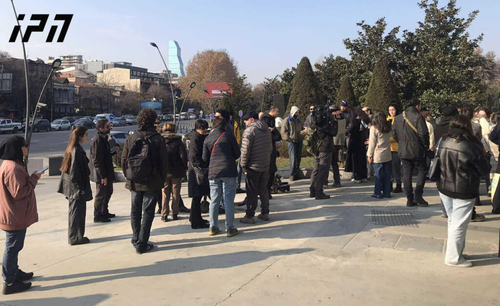 იუსტიციის სახლთან იმყოფებიან საზოგადოების სხვადასხვა სფეროს წარმომადგენლები, მათ შორის მსახიობები.