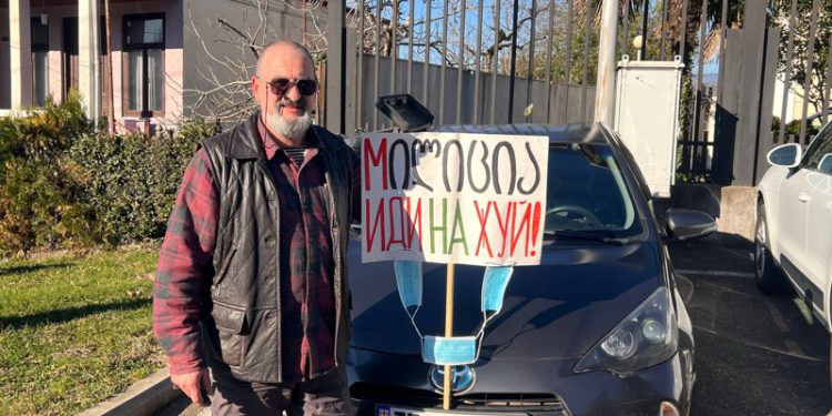 ზუგდიდელი აქტივისტი, შალვა ესართია სასამართლოშო იმ ბანერით მივიდა, რის გამოც ასამართლებენ.