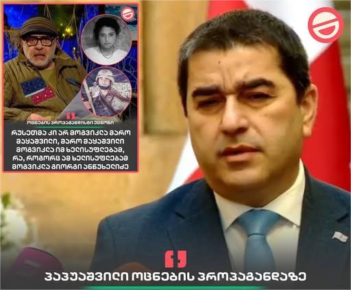 “თქვენი დამოკიდებულება ისტორიის ასე აგდებულად, სპეკულაციურად, თქვენი პოლიტიკური მიზნებისთვის გამოსაყენებლად ეს არის სამარცხვინო, როდესაც ასე აგდებულად უყურებთ ისტორიას, ფიქრობთ ამ ისტორიიდან რა შეიძლება სპეკულაციურად გამოიტანოთ თქვენი კონკრეტული ტელევიზიის პატრონებისთვის, ეს არის სირცხვილი. 1921 წლის გმირებს შერცხვებოდათ, მარო მაყაშვილს და სხვებს შერცხვებოდათ რომ ენახათ რომ 105 წლისთავზე თქვენი ტელევიზიები, თქვენი დამფინანსებლების დავალებით ასეთი