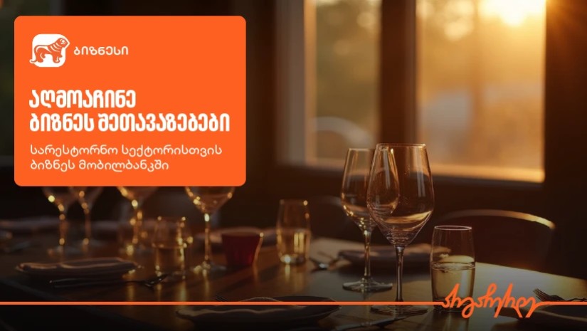 სარესტორნო ბიზნესს, რომელიც ცვალებად გარემოში ოპერირებს, სანდო პარტნიორები და ეფექტური ინსტრუმენტები სჭირდება, რათა ყოველდღიური პროცესები გაუმარტივდეს და ბიზნესის განვითარების შესაძლებლობები გაზარდოს. სწორედ ამ მიზანს ემსახურება საქართველოს ბანკისა და პარტნიორი კომპანიების ერთობლივი შეთავაზებები, რომლებიც საქართველოს ბანკის ბიზნეს მობილბანკში შეგიძლიათ აღმოაჩინოთ. შეთავაზებები მოიცავს ფასდაკლებებსა და უფასო სერვისებს ფინანსურ, ტექნოლოგიურ, ლოგისტიკურ თუ სხვა მიმართულებებზე. მათ შორისაა: