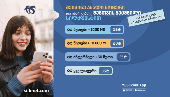 · ულიმიტო ინტერნეტი + 60 ადგილობრივი წუთი – 25₾