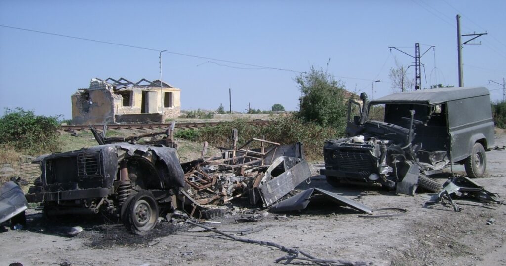 2008 წლის 11 აგვისტოს ცხინვალიდან მომავალი ქართული სამხედრო კოლონა რუსულმა ავიაციამ დაბომბა. შინდისთან გამართულ ბრძოლას 17 ქართველი მებრძოლის სიცოცხლე შეეწირა. ფოტოები ნინო დალაქიშვილმა აგვისტოს მიწურულს, ჯერ კიდევ იმ დროს გადაიღო, როდესაც ამ ადგილებს რუსული სამხედრო ძალა აკონტროლებდა.