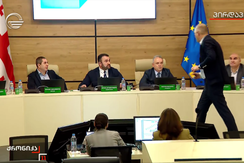 ცენ­ტრა­ლურ სა­არ­ჩევ­ნო კო­მი­სი­ის შე­ნო­ბა­ში მიმ­დი­ნა­რე არ­ჩევ­ნე­ბის შე­მა­ჯა­მე­ბე­ლი სხდო­მის დროს, „ერ­თი­ა­ნო­ბა – ნა­ცი­ო­ნა­ლუ­რი მოძ­რა­ო­ბის“ წარ­მო­მად­გე­ნელ­მა, და­ვით კირ­თა­ძემ ამ დრო­ის­თვის და­უდ­გე­ნე­ლი თხე­ვა­დი სი­თხე შე­ას­ხა ცენ­ტრა­ლუ­რი სა­არ­ჩევ­ნო კო­მი­სი­ის თავ­მჯდო­მა­რეს, გი­ორ­გი კა­ლან­და­რიშ­ვილს.