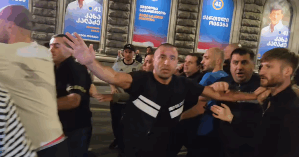 · თბილისში, კახა კალაძის შტაბთან ოცნების მხარდამჭერები კვლავ დაუპირისპირდნენ ანტისამთავრობო დემონსტრაციის მონაწილეებს.