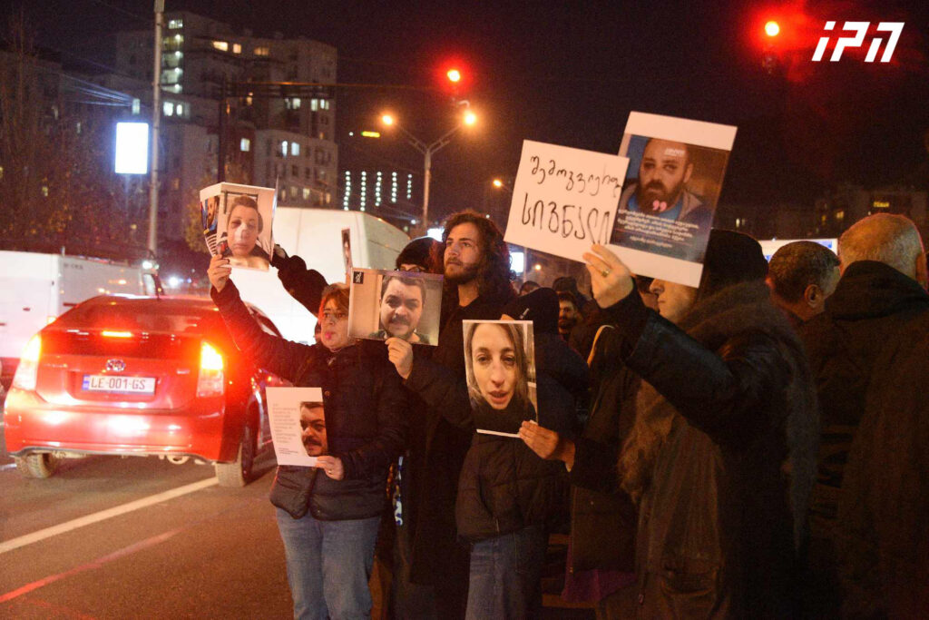 მათ შსს-სთან ნაცემი მოქალაქეებისა და ჟურნალისტების ფოტოები ჰქონდათ მიტანილი.