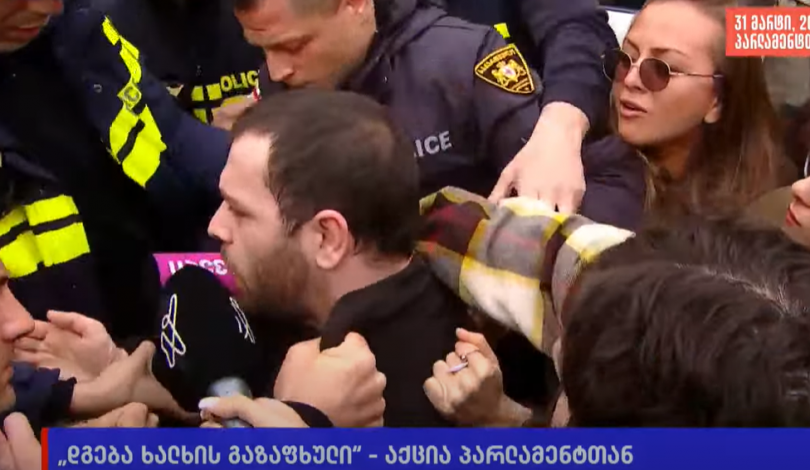 ხასაია პოლიციამ პარლამენტის მიმდებარე ტერიტორიიდან ძალის გამოყენებით განყოფილებაში გადაიყვანა.