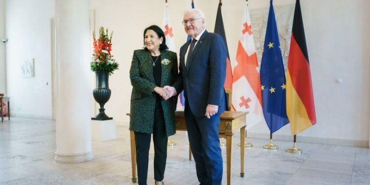პრეზიდენტის ადმინისტრაციის ცნობით, ბერლინში შეხვედრისას საქართველოს პრეზიდენტმა გერმანიის ფედერაციული რესპუბლიკის პრეზიდენტთან ისაუბრა ქვეყანაში შექმნილ წინასაარჩევნო გარემოზე, რომელიც ინსპირირებულია რუსეთისაგან, ასევე, ქართულ დიასპორაზე, რომელსაც ხელოვნური ბარიერები ექმნება არჩევნებში მონაწილეობისათვის.
