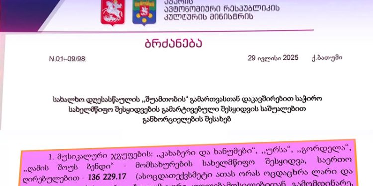 ირკვევა, რომ აჭარის მთავრობამ “შუამთობის” დღესასწაულზე მიწვეულ მომღერლებს რამდენიმე საათში თითქმის 140 ათასი ლარი გადაუხადა.