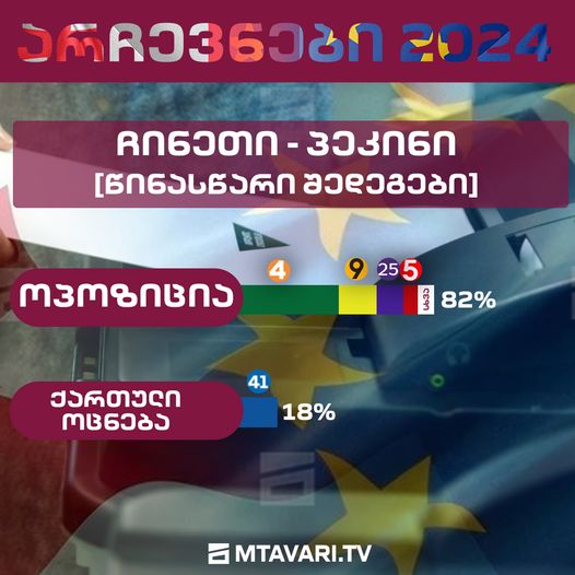 ჩინეთის დედაქალაქ პეკინის საარჩევნო უბანზე ოპოზიციამ “ოცნება” დიდი უპირატესობთ დაამარცხა | წინასწარი შედეგებით, ოპოზიციას 82% აქვს, “ოცნებას” – 18%