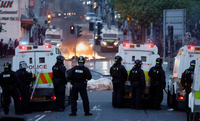 ჩრდილოეთ ირლანდიაში ორი ღამეა არეულობა გრძელდება, მომიტინგეები თავს დაესხნენ პოლიციას, სახლები და ავტომობილები დაწვეს
