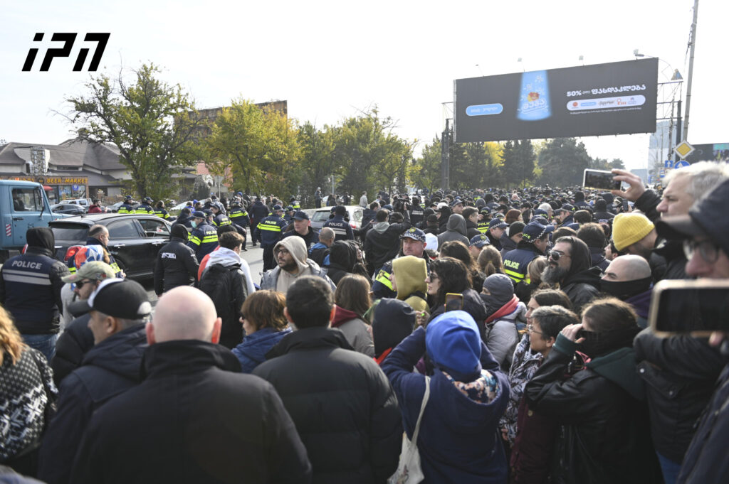 პოლიცია აქციის მონაწილეებს გზის სავალ ნაწილს ათავისუფლებინებს.