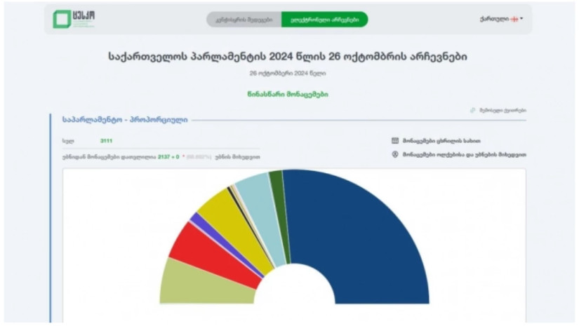 ცესკოს წინასწარი შედეგები ცნობილია. ამ დროისთვის გამოქვეუნებული მონაცემების მიხედვით 3, 111 უბნიდან დათვლილია 2, 137 უბნის მონაცემები, რაც საარჩევნო უბნების 68, 692%-ია.