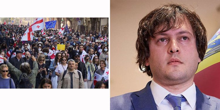 ქართული ოცნების გუნდის პრემიერი, ირაკლი კობახიძე, თბილისში, მასშტაბურ აქციაზე ამბობს, რომ ცოტა ხალხია გამოსული:
