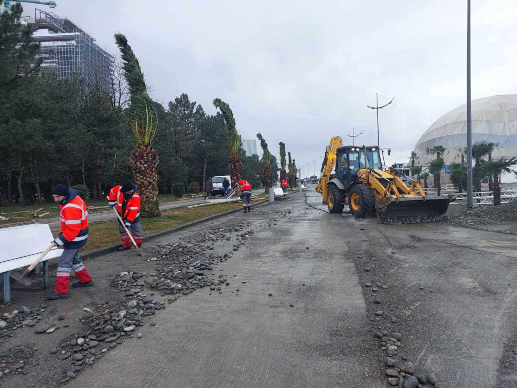 დილიდან დაიწყო შტორმის შედეგად დაბინძურებული ძველი და ახალი ბულვარის პრომენადის გაწმენდითი სამუშაოები.
