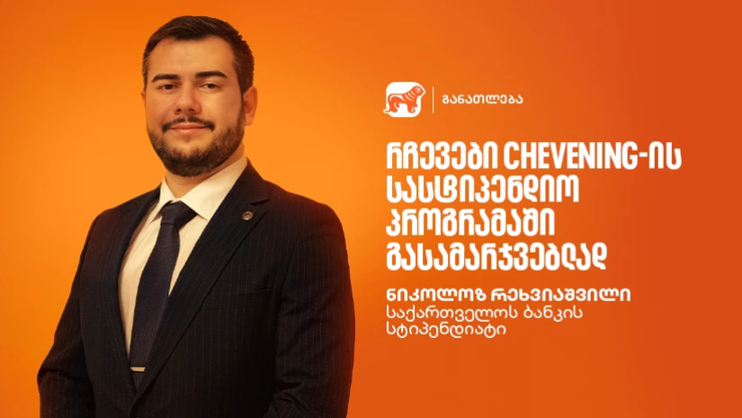 წელს Chevening-ის პროგრამაში საქართველოს ბანკის ერთ-ერთი სტიპენდიატი ნიკოლოზ რეხვიაშვილი გახდა, რომელმაც ლონდონის ბიზნეს სკოლაში ფინანსების სამაგისტრო პროგრამაზე სწავლა უკვე დაიწყო.