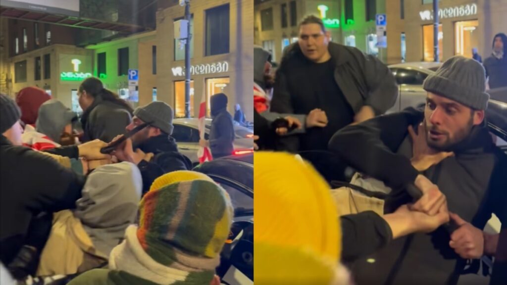 21 თებერვალს, კოსტავას ქუჩაზე, ფილარმონიის მიმდებარედ, იქ, სადაც საპროტესტო აქციის მონაწილეები გადაადგილდებოდნენ, ორი ადამიანი მცირე ზომის მანქანიდან გადმოვიდა, მათ თან ჰქონდათ მაჩეტე და ხელკეტი.