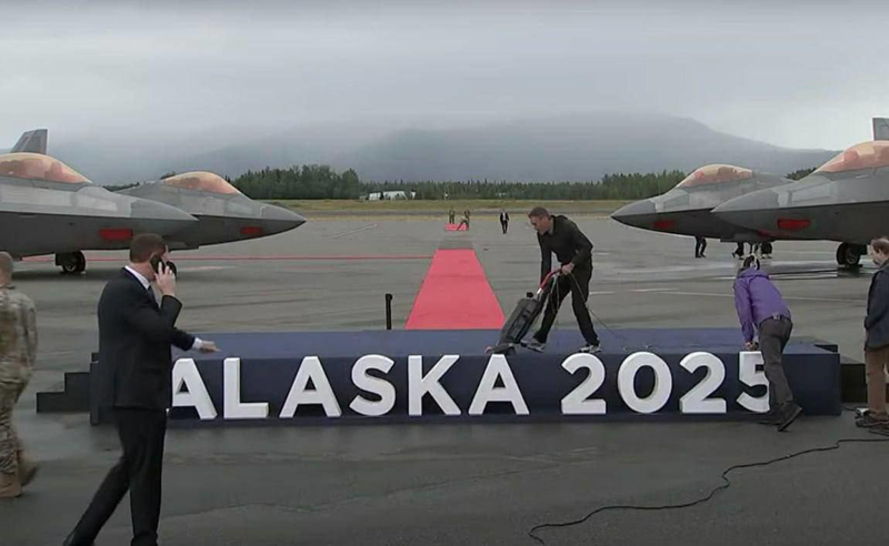 ალასკაში, წითელ ხალიჩასთან, სადაც პუტინმა უნდა გაიაროს, ამერიკული ავიაგამანადგურებლები დგანან.