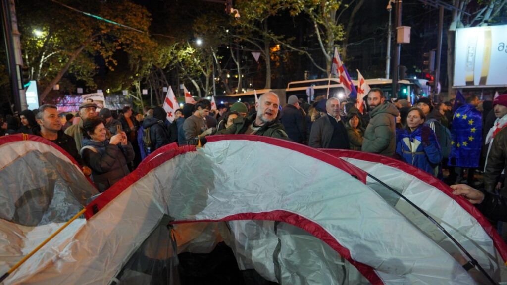თბილისის სახელწმიფო უნივერსიტეტის პირველი კორპუსთან, 24-საათიანი უწყვეტი აქციის მონაწილეებმა კარვების გაშლა დაიწყეს.