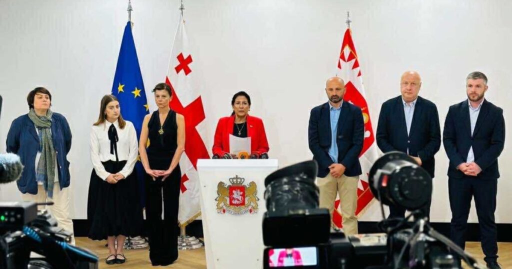 სალომე ზურაბიშვილის კოორდინაციით მოქმედი “წინააღმდეგობის პლატფორმა”, რომელიც ოპოზიციური პარტიების ნაწილს აერთიანებს, “ვაიმარის სამკუთხედის” ლიდერებს, ემანუელ მაკრონს (საფრანგეთის პრეზიდენტი), ფრიდრიხ მერცს (გერმანიის კანცლერი) და დონალდ ტუსკს (პოლონეთის პრემიერ-მინისტრი) წერილით მიმართავს.