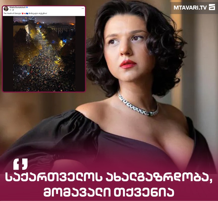 “საქართველოს ახალგაზრდობა, მომავალი თქვენია” – წერს ხატია ბუნიათიშვილი სოციალურ ქსელში და რუსთაველის გამზირზე გამართული საპროტესტო აქციის ფოტოს აქვეყნებს.